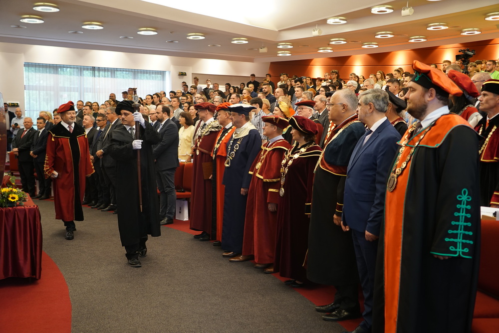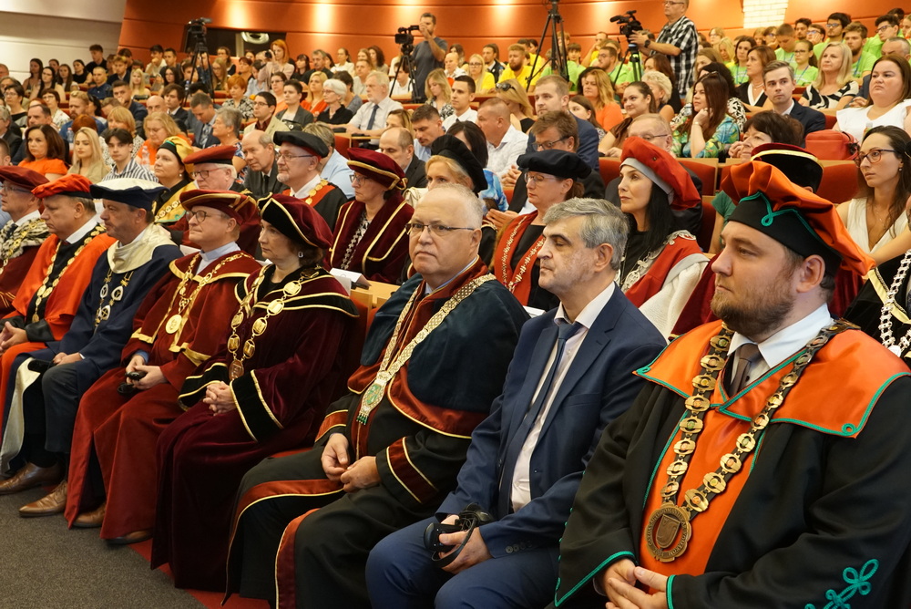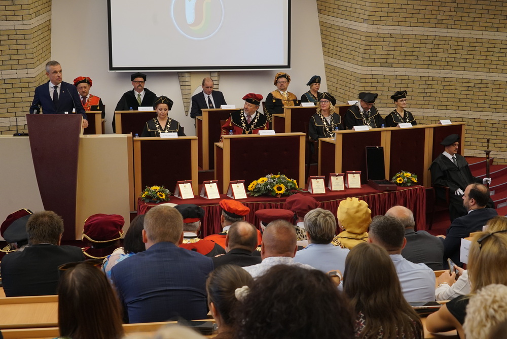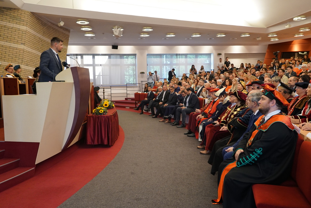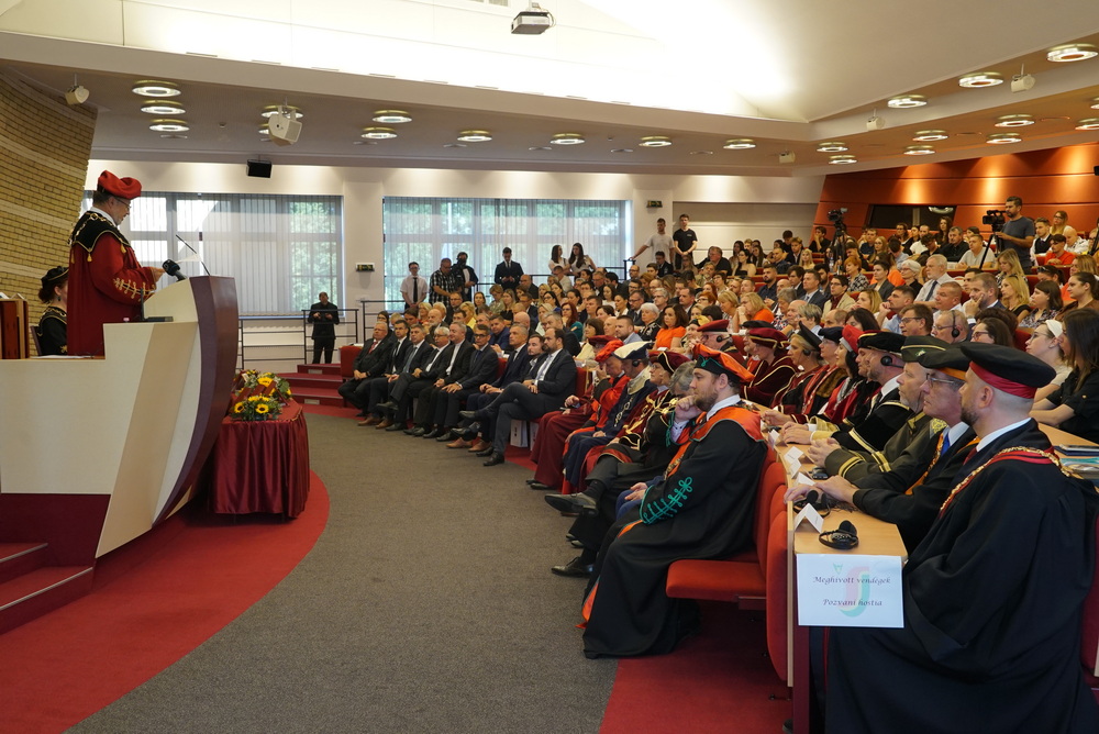 Az ünnepségen elsőként az újonnan kinevezett rektor köszöntötte a meghívott vendégeket. Beszédében ismertette az elmúlt akadémiai év legfontosabb eseményeit, kiemelten foglalkozott a VER2026 tudománymetriai értékeléssel, az egyetem minőségbiztosítási rendszerével, az új gyakorlatorientált és doktori tanulmányi programokkal, a hallgatói létszámok alakulásával. Hangsúlyozta, hogy a hallgatók száma már évek óta stabil az intézményben, ami fontos a tervezhető fejlődés szempontjából is.
