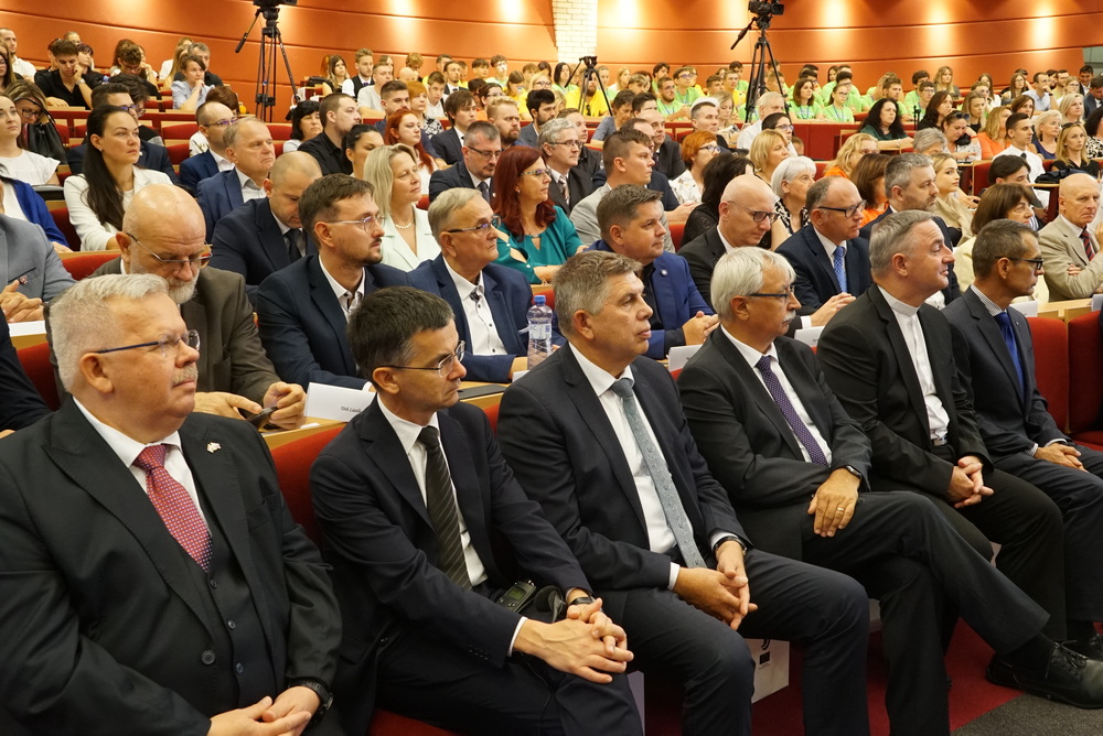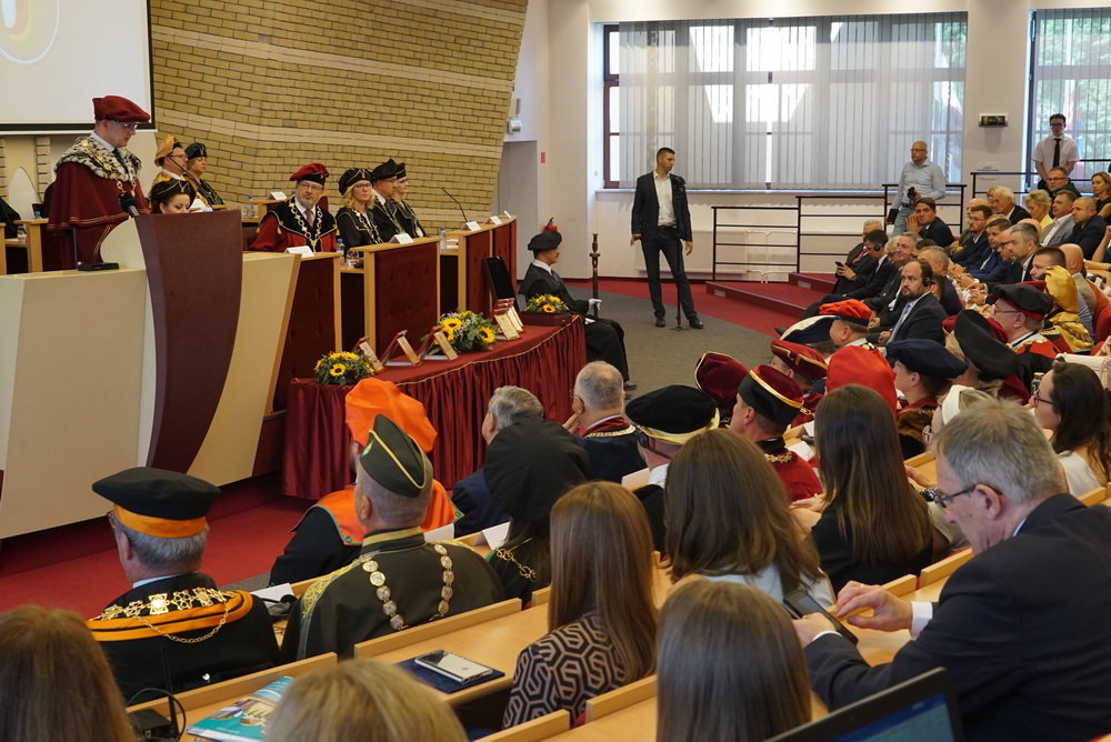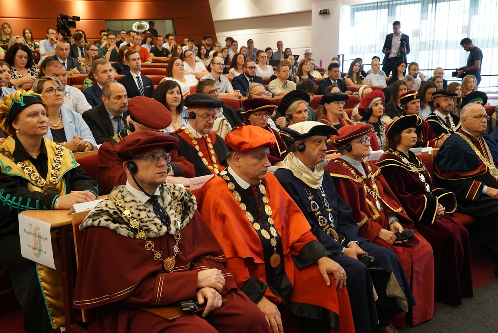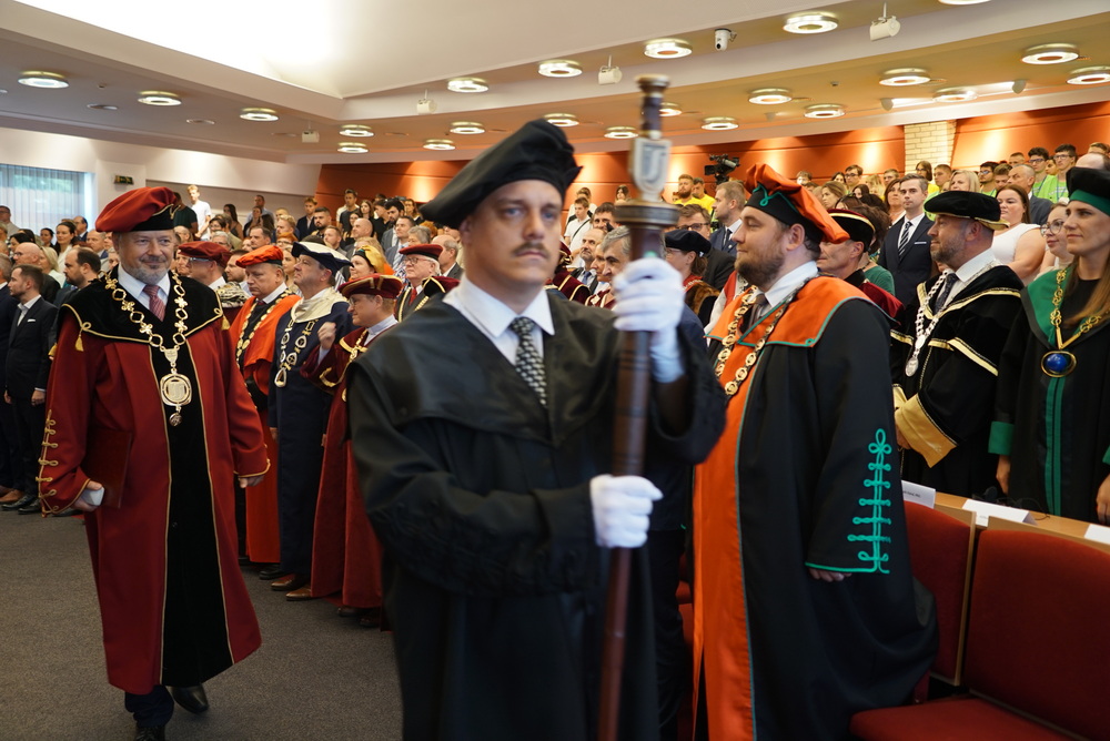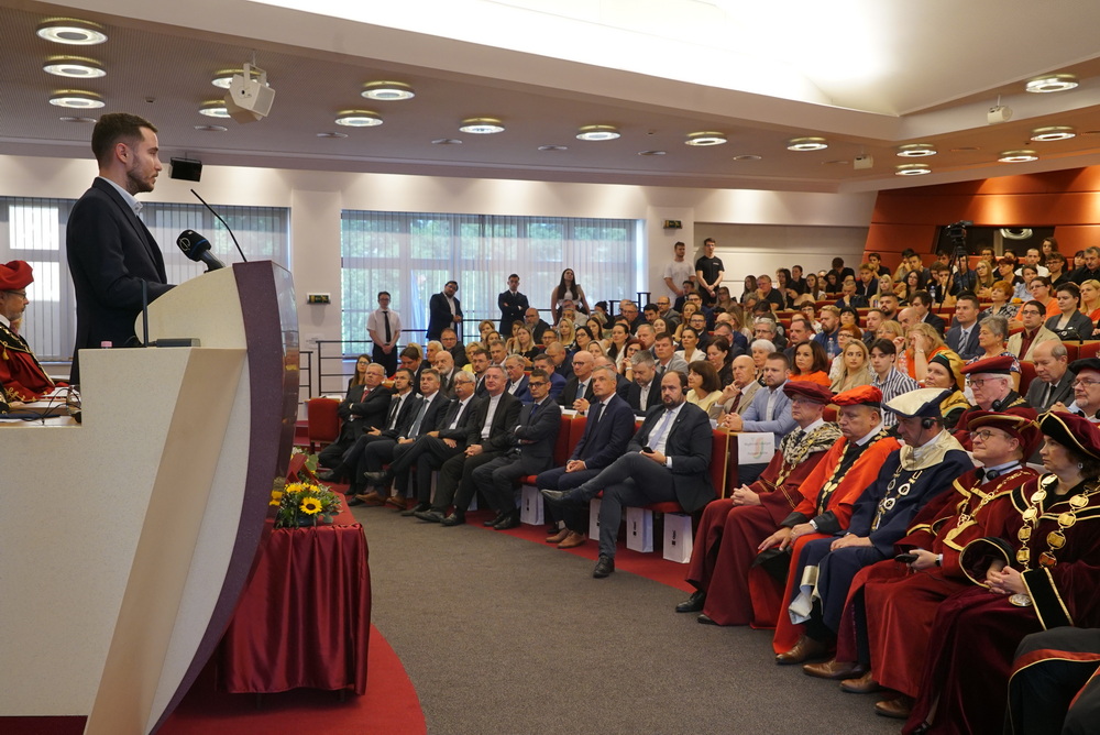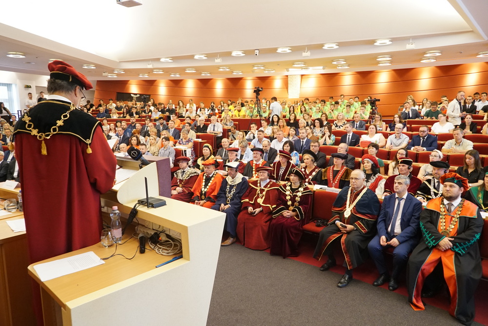 Az ünnepségen elsőként az újonnan kinevezett rektor köszöntötte a meghívott vendégeket. Beszédében ismertette az elmúlt akadémiai év legfontosabb eseményeit, kiemelten foglalkozott a VER2026 tudománymetriai értékeléssel, az egyetem minőségbiztosítási rendszerével, az új gyakorlatorientált és doktori tanulmányi programokkal, a hallgatói létszámok alakulásával. Hangsúlyozta, hogy a hallgatók száma már évek óta stabil az intézményben, ami fontos a tervezhető fejlődés szempontjából is.